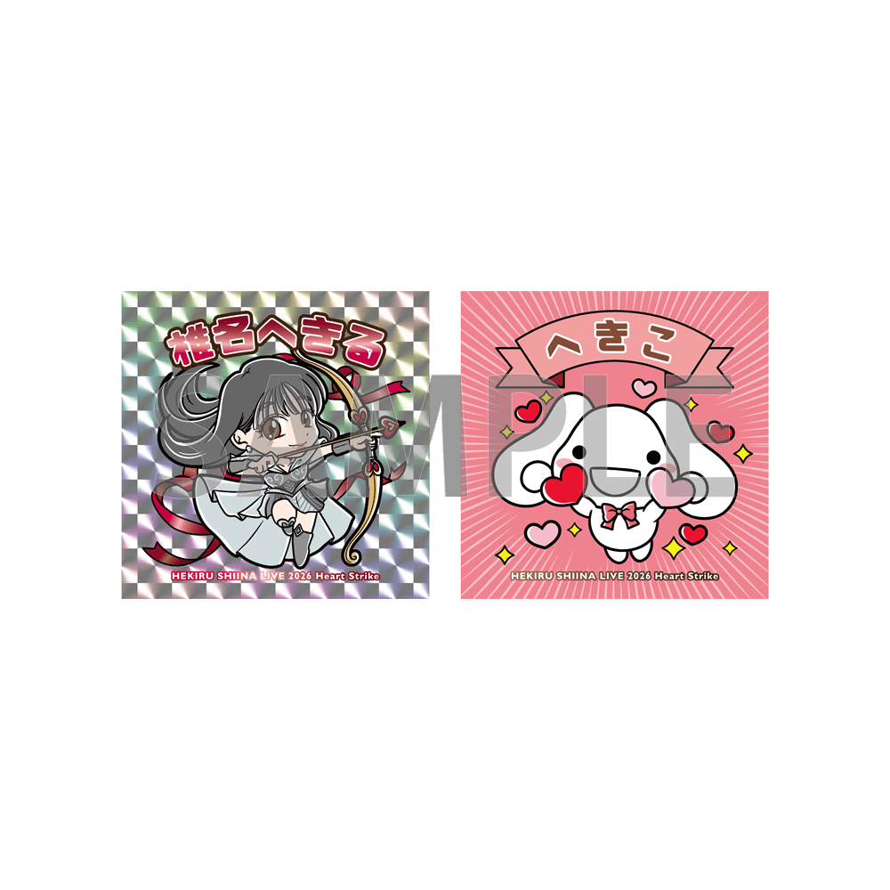 ・本商品は数量限定商品になります。 ・画像はイメージです。実際の商品とは色味等が異なる場合がございます。 SIZE:約H50×W50mm SPEC:2枚セット(愛の弓矢ver./へきこバレンタインver.)