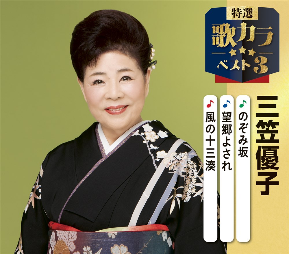 RELEASE CDシングル 特選・歌カラベスト3 三笠優子 三笠 優子 / 特選・歌カラベスト 2025/12/10 予約受付中 KICM-8506 定価:¥1,500 (税抜価格 ¥1,364) カートに入れる 収録内容 【DISC1 CDシングル】 1.のぞみ坂 作詞:仁井谷 俊也 作曲:岡 千秋 編曲:池多 孝春 2.望郷よされ 作詞:仁井谷 俊也 作曲:宮下 健治 編曲:伊戸 のりお 3.風の十三湊 作詞:仁井谷 俊也 作曲:榊 薫人 編曲:池多 孝春 4.のぞみ坂 (オリジナルカラオケ) 5.望郷よされ (オリジナルカラオケ) 6.風の十三湊(オリジナルカラオケ) BACK to ARTIST