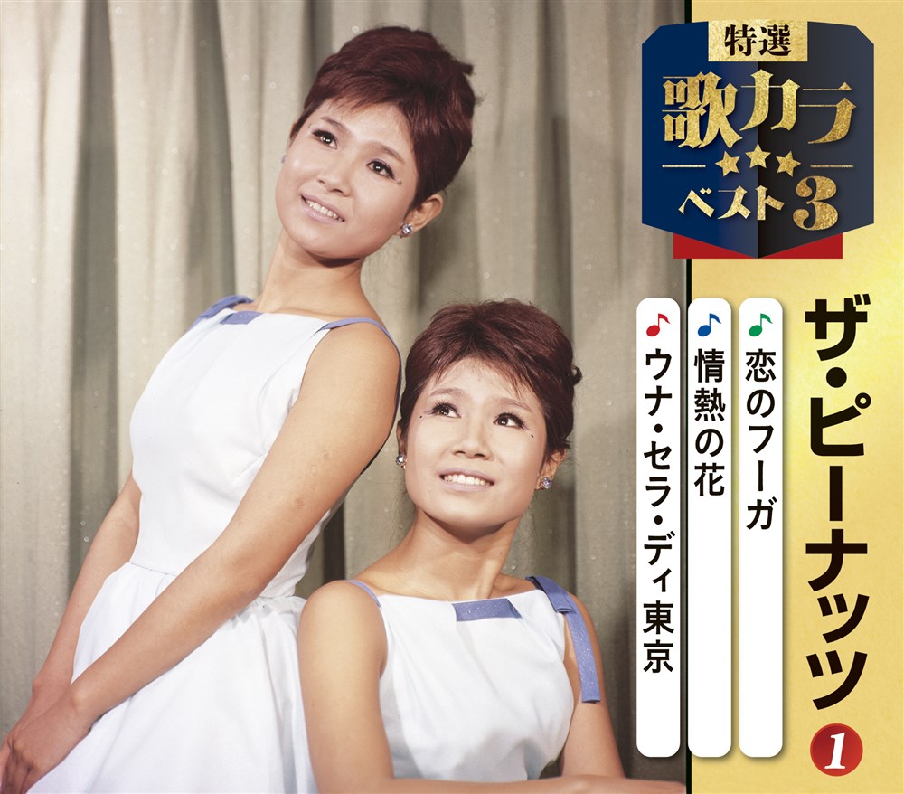 RELEASE CDシングル 特選・歌カラベスト3 ザ・ピーナッツ@ ザ・ピーナッツ / 特選・歌カラベスト 2025/12/10 KICM-8556 定価:¥1,500 (税抜価格 ¥1,364) カートに入れる 収録内容 No.楽曲/アーティスト 【DISC1 CDシングル】 1.恋のフーガ 作詞:なかにし 礼 作曲:すぎやま こういち 編曲:宮川 泰 2.情熱の花 作曲:Ludwig van Beethoven 編曲:宮川 泰 3.ウナ・セラ・ディ東京 作詞:岩谷 時子 作曲:宮川 泰 編曲:宮川 泰 4.恋のフーガ(メロカラ) 5.情熱の花 (オリジナルカラオケ) 6.ウナ・セラ・ディ東京(メロカラ) BACK to ARTIST